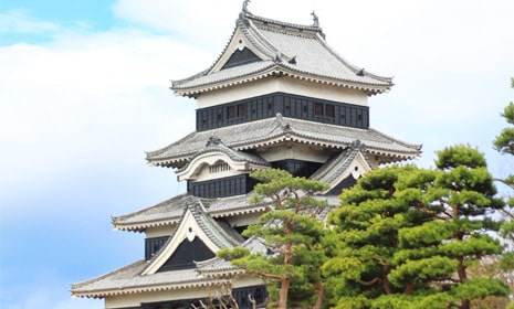 | 松本城 | 松本市のシンボル!漆黒の美しいこのお城は、別名「烏城」と呼ばれ、運が良ければ美しい夜のライトアップも見ることができます♪ |