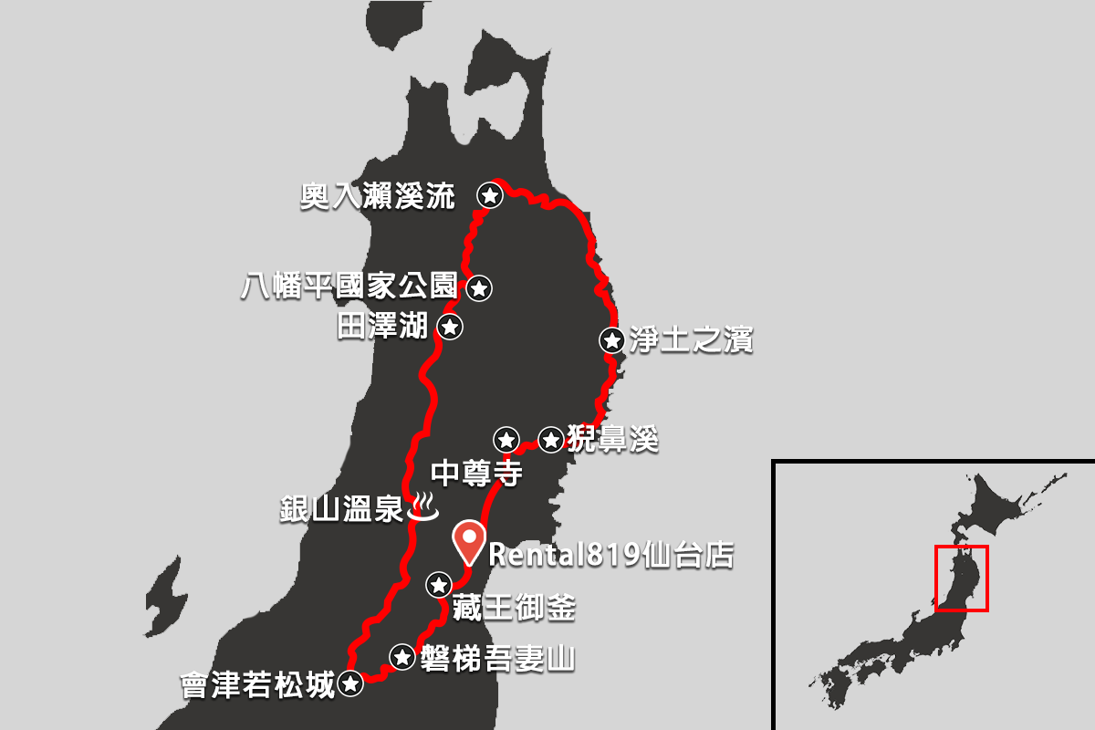 不論是名勝奧入瀨溪流、淨土之濱,歷史名物的天守閣會津若松城、中尊寺,還有機車旅遊絕不能錯過的山路滿載...這片神秘的地圖等你來解鎖,來東北冒險吧!
